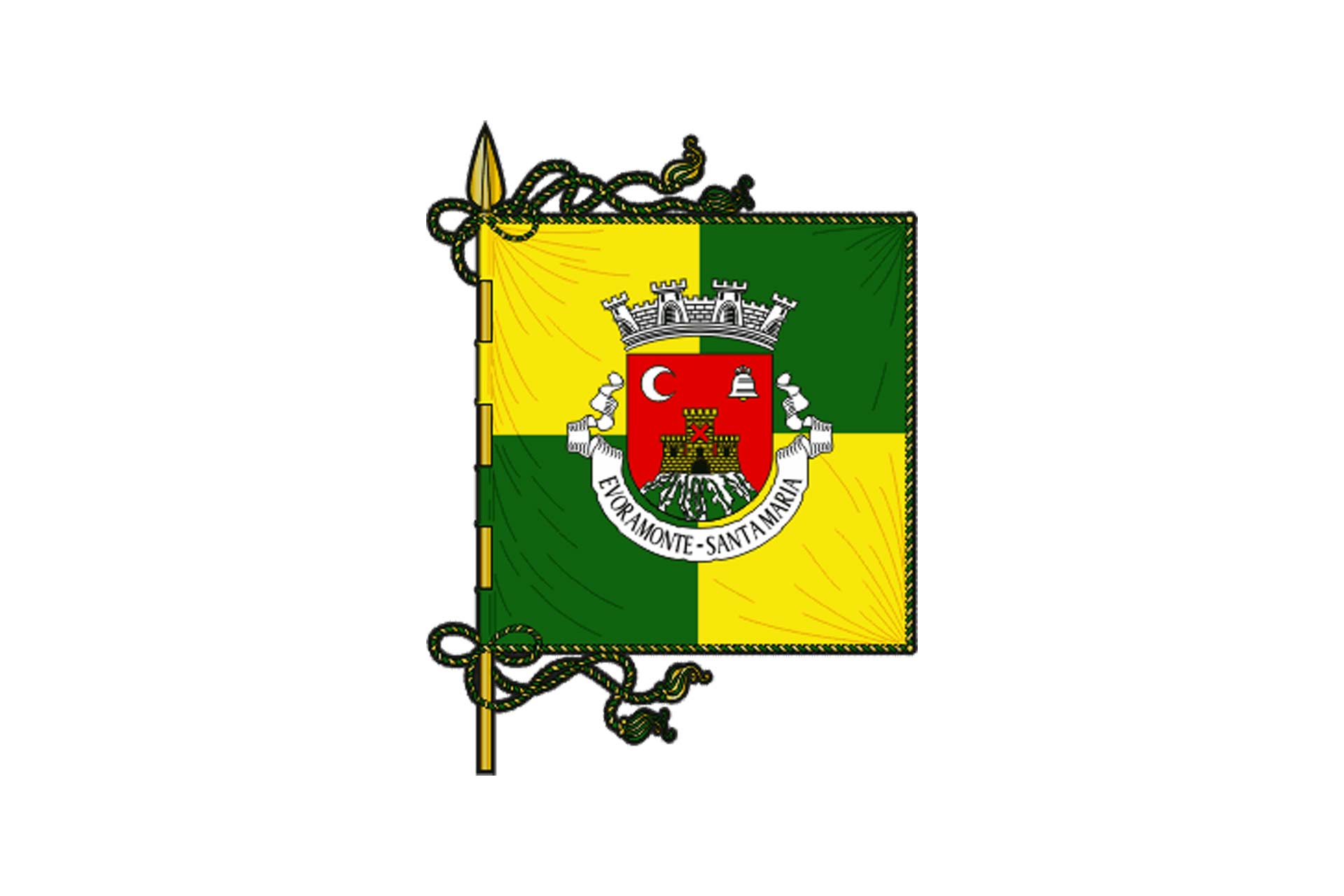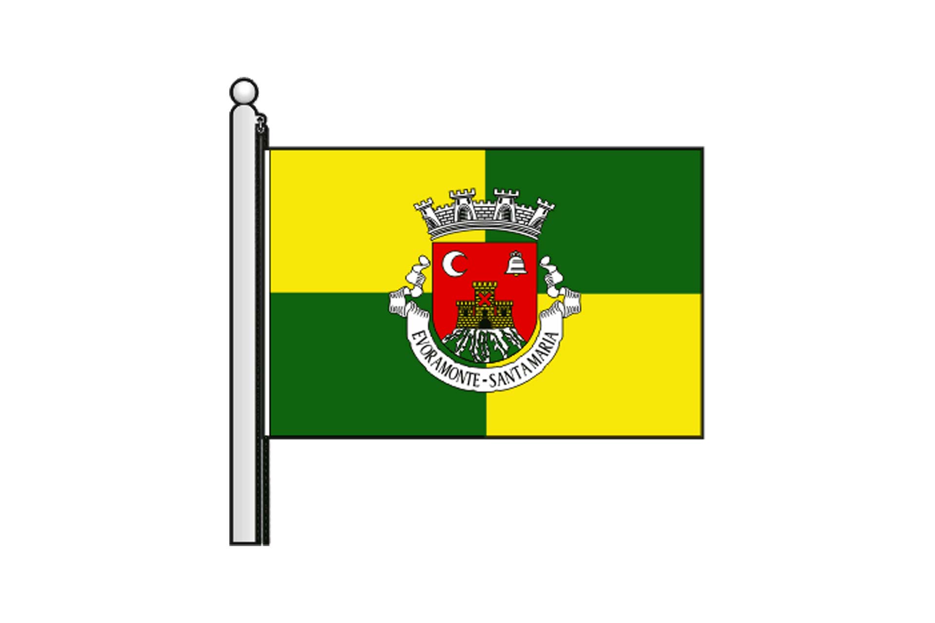 Listel branco com a legenda a negro, em maiúsculas: “ EVORAMONTE – SANTA MARIA “.